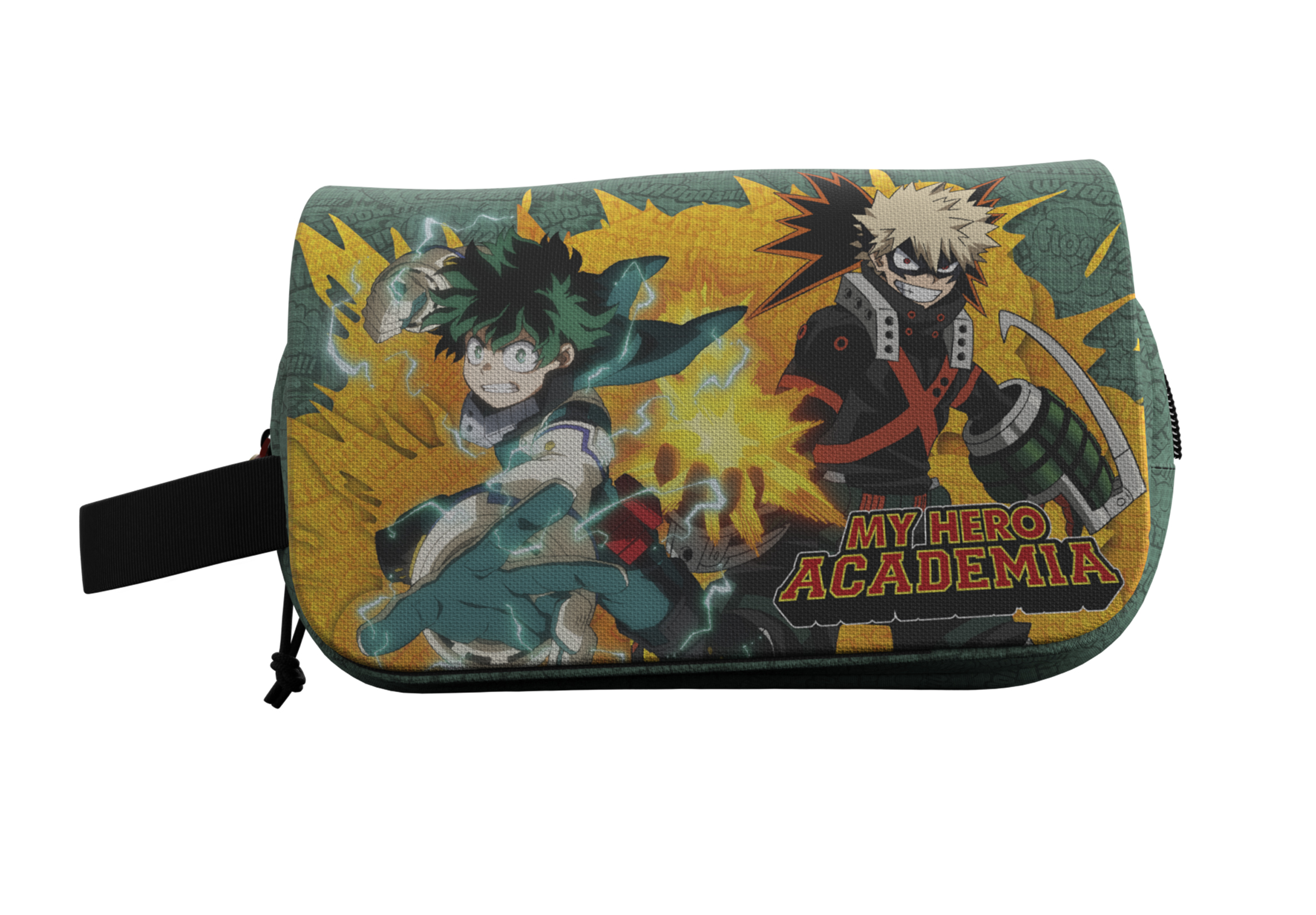 CYP Brands presenta dentro de su l?nea de productos de My Hero Academia este neceser con asa y solapa. Cuenta con dos cremalleras y en ?l aparecen Deku y Katsuki.