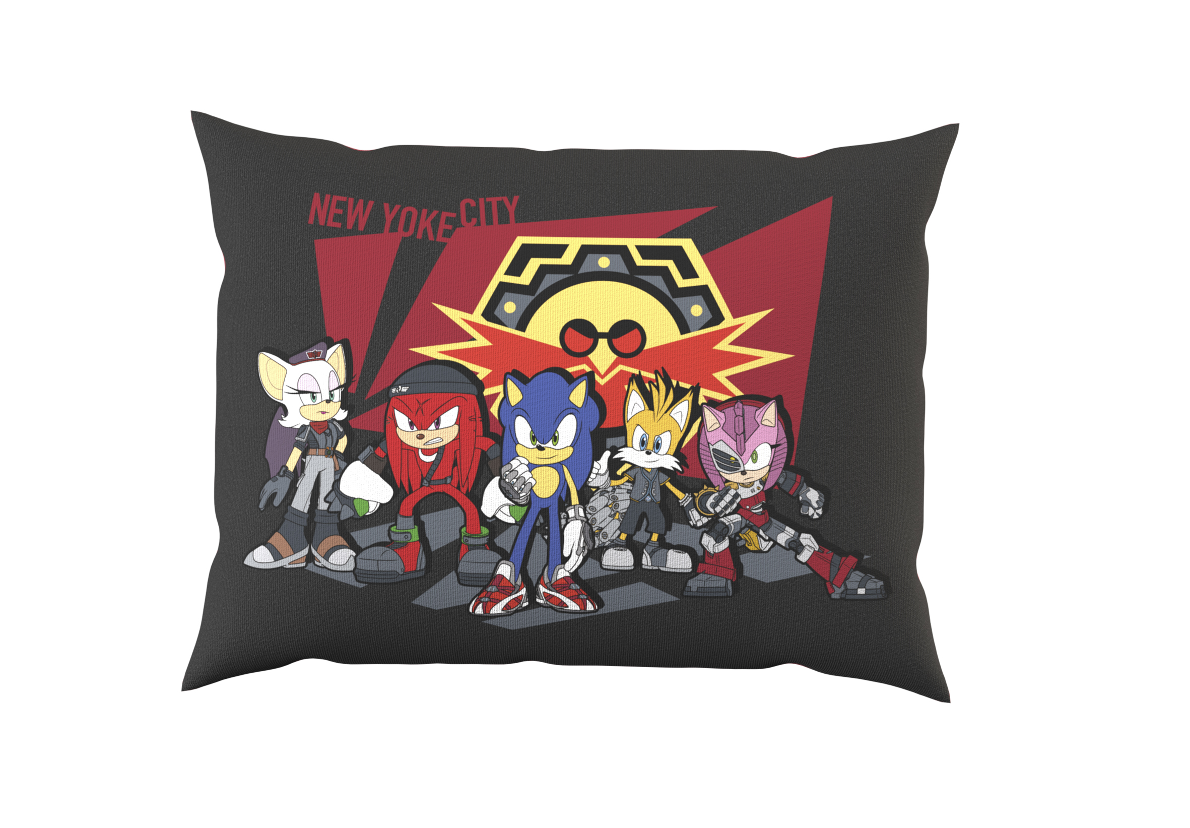 CYP Brands presenta dentro de su l?nea de productos de la serie Sonic Prime este coj?n de 35 cent?metros de ancho. En ?l aparecen algunos de los personajes con estilo futurista sobre un fondo negro.