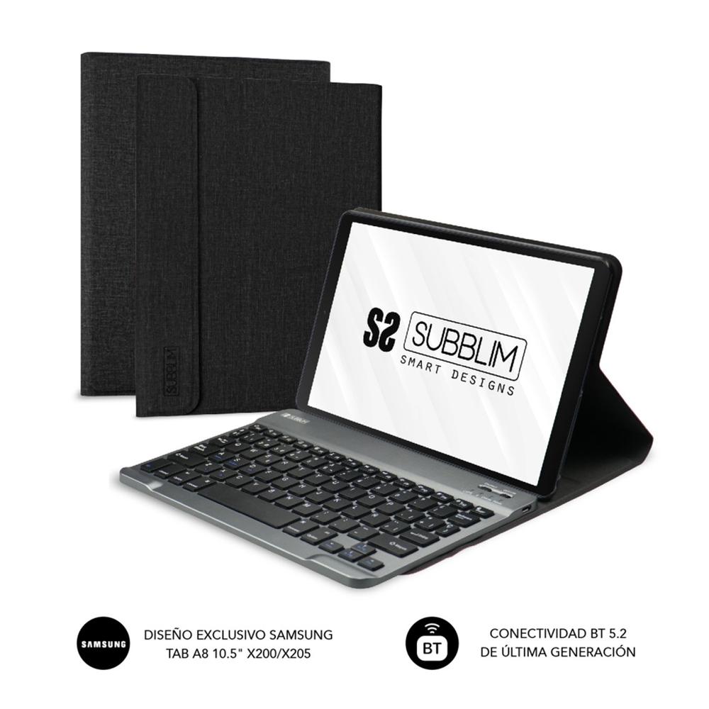 Este Teclado de Subblim inal?mbrico mediante tecnolog?a Bluetooth, es extra?ble y va acompa?ado de una funda de alta calidad exclusiva para la Tablet Samsung GT A8 10.5 X200/205. El sistema de