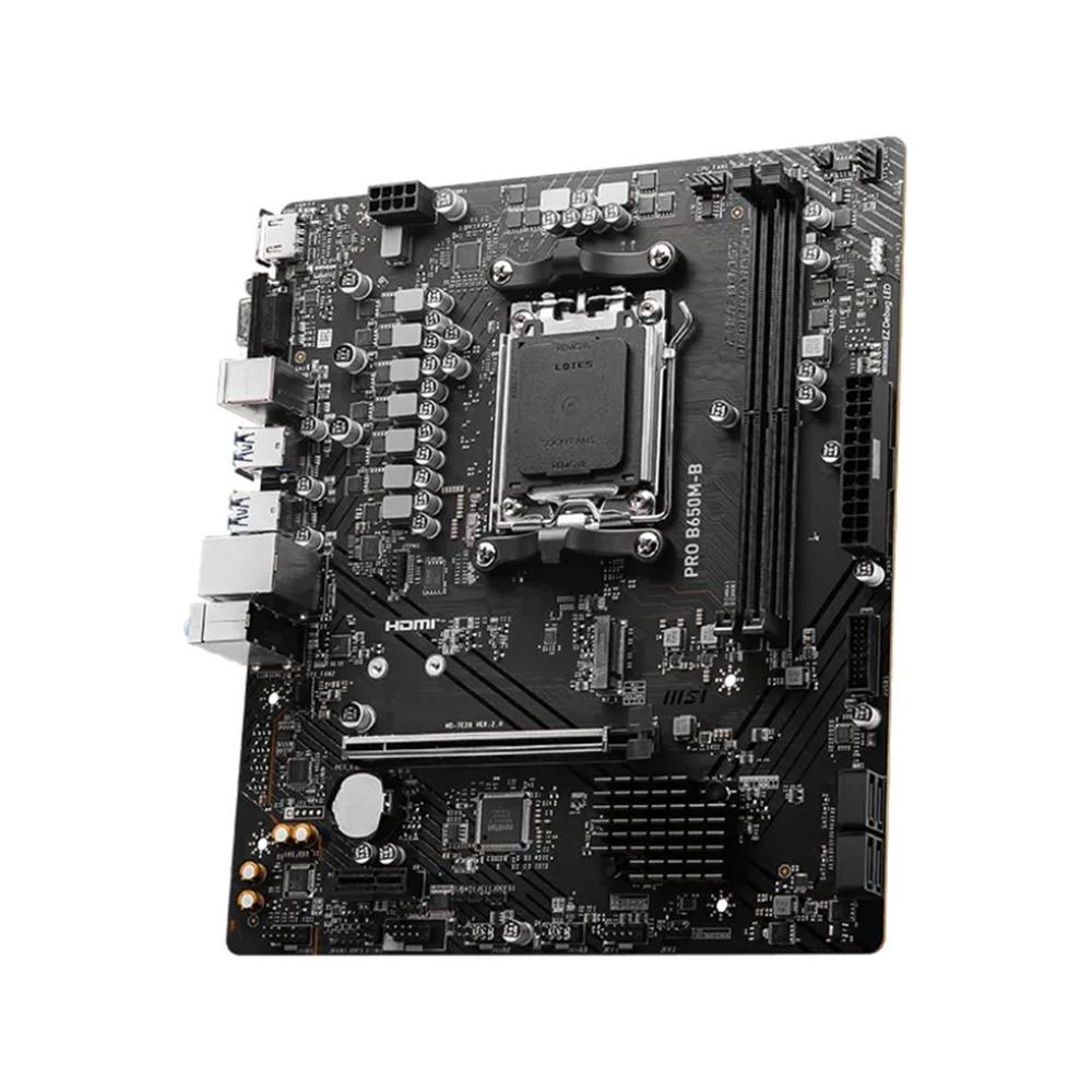 MSI PRO B650M-B. Fabricante de procesador: AMD, Socket de procesador: Z?calo AM5, Procesador compatible: AMD Ryzen 7 7th Gen, AMD Ryzen 9 7th Gen. tipos de memoria compatibles: DDR5-SDRAM,