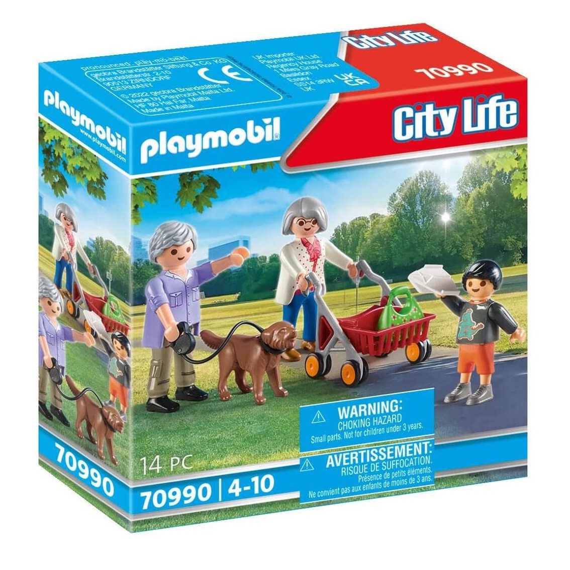 Diversi?n con los abuelos de Playmobil con nietos y perro mientras camina.
